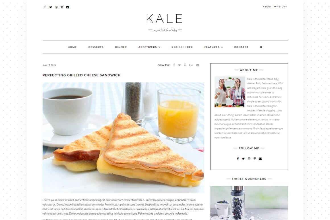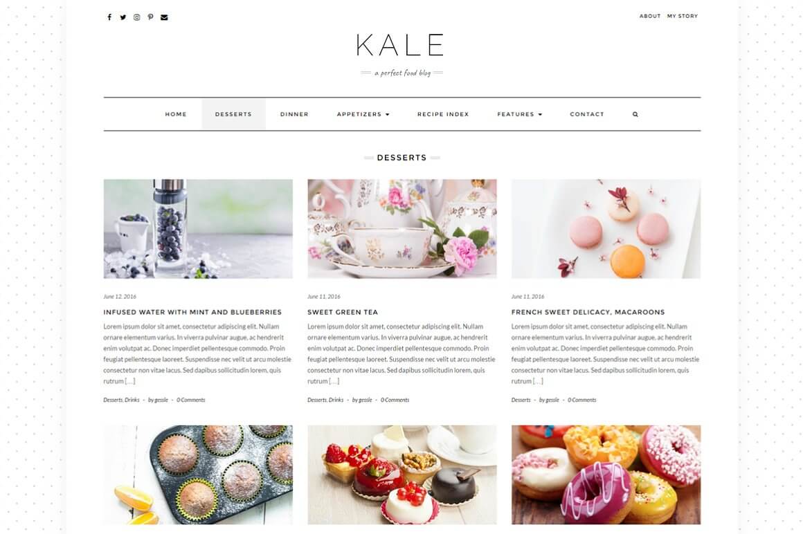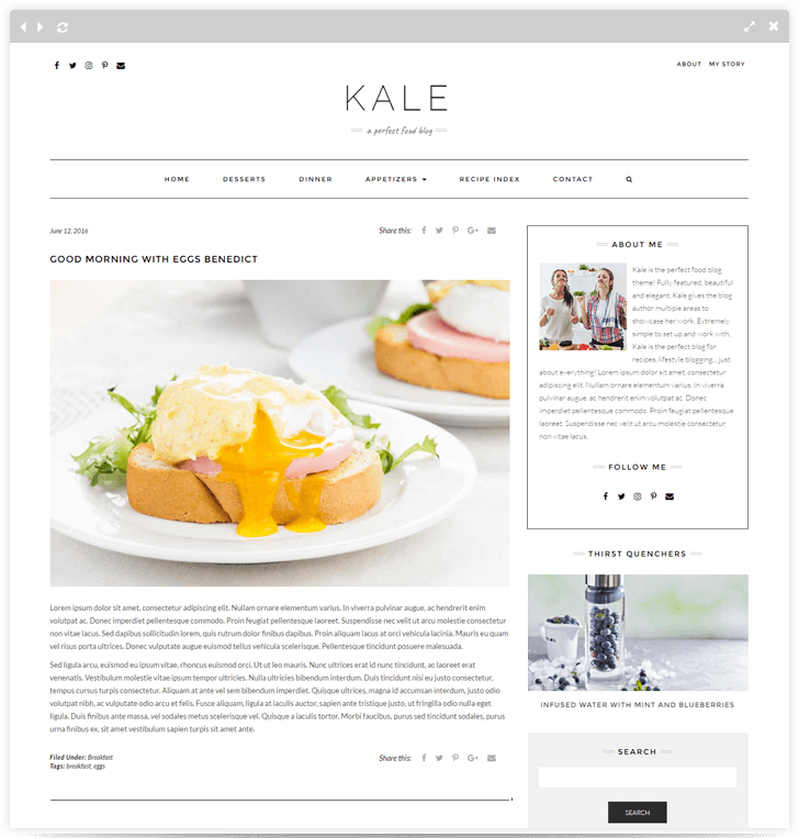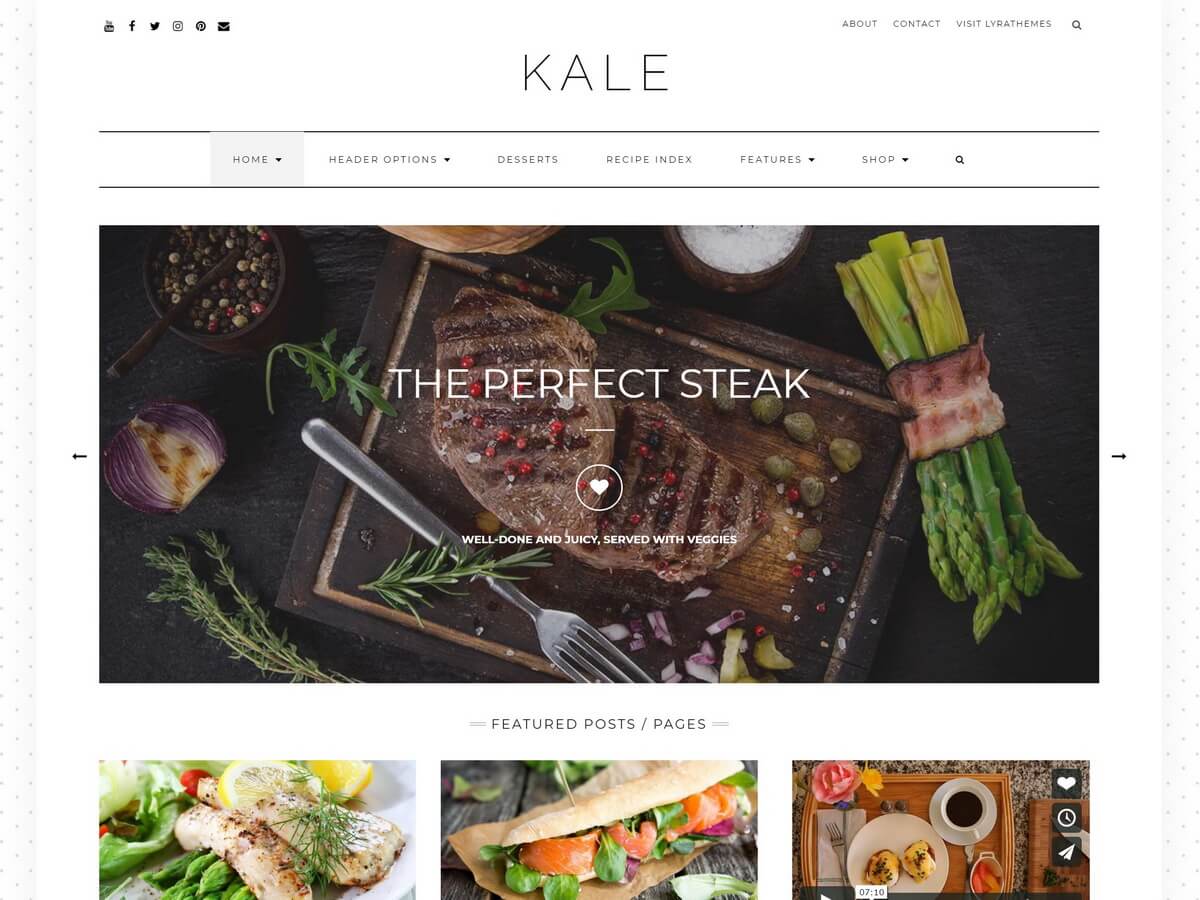 Kale is a powerful WordPress theme packaged with many amazing features, especially easy to use. It was designed mainly as a food blog, so obviously you can use it for almost any kind of blog.