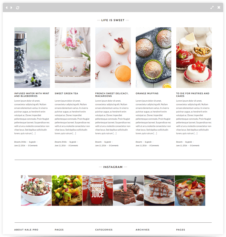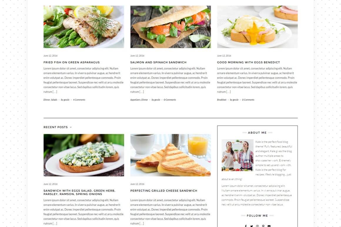 The beauty of using Kale as your WordPress theme is that it allows the freedom to create whatever aesthetic you want for your website. You are not locked into the limitations of other WordPress themes. The fact that food blogs tend to have very clean themes, Kale fits right in. There are thousands of people who use this WordPress theme and they love it.
